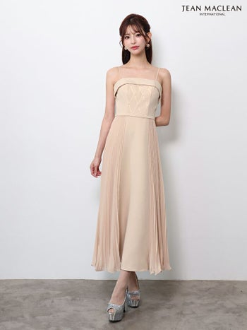 4. 【JEANMACLEAN/ジャンマクレーン】キャミソール シフォン プリーツ切替 Aラインロングドレス(51994)