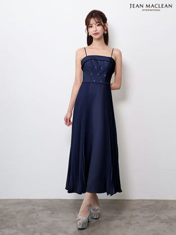 シンプルで大人っぽいデザイン♡ 【JEANMACLEAN/ジャンマクレーン】キャミソール シフォン プリーツ切替 Aラインロングドレス(51994)