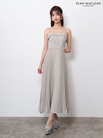 3. 【JEANMACLEAN/ジャンマクレーン】キャミソール シフォン プリーツ切替 Aラインロングドレス(51994)