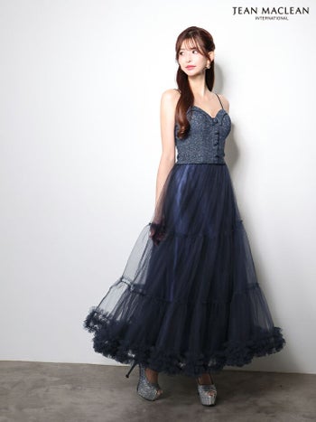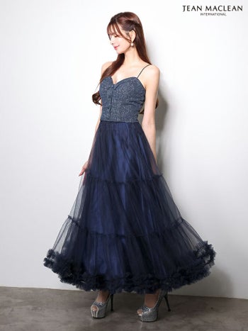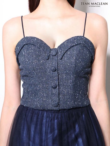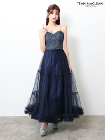キャバドレス JEANMACLEAN ジャンマクレーン キャミソール ハートカット フロントボタン ツイード シフォンスカート セットアップ Aラインロングドレス