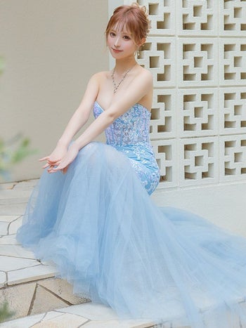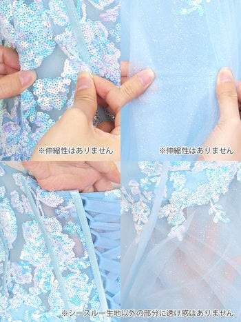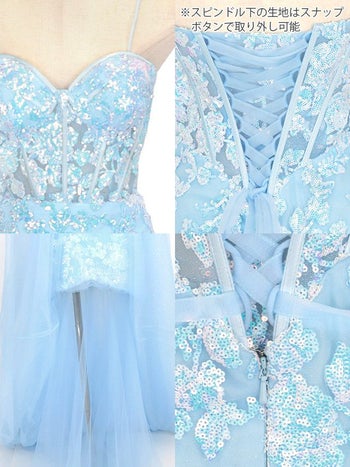 オーロラのスパンコールと裾チュールの組み合わせが美しい