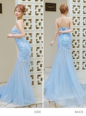 キャバドレス LaLaTulle USA キャミソール ハートカット キラキラ オーロラ バックスピンドル スパンコール チュール セクシー バースデー マーメイドロングドレス