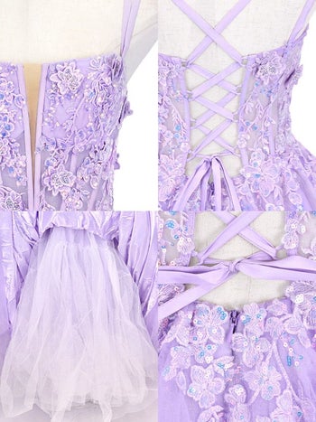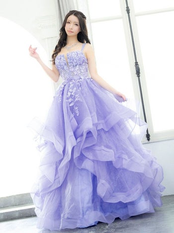 4. 【LaLaTulle USA/インポート】キャミソール フラワー刺繍 シアー チュール レースアップ バースデー オープンバスト Aラインロングドレス