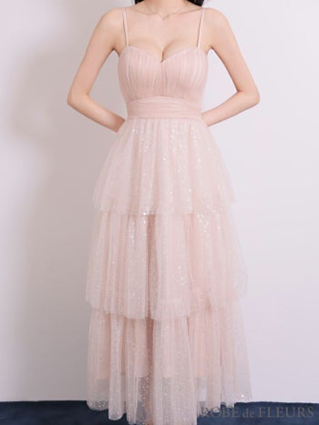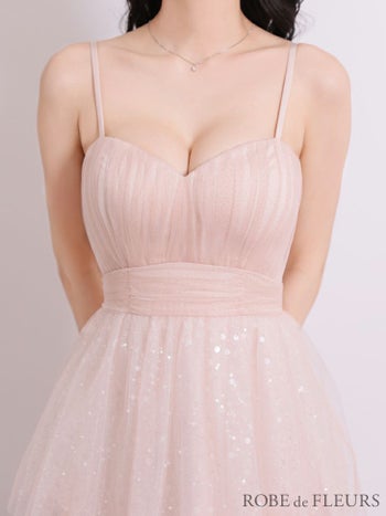 4. 予約商品【2月上旬入荷予定】【ROBEdeFLEURS/ローブドフルール】ガーリー オープンバスト キャミソール ラメ チュール Aラインロングドレス (fm3714)