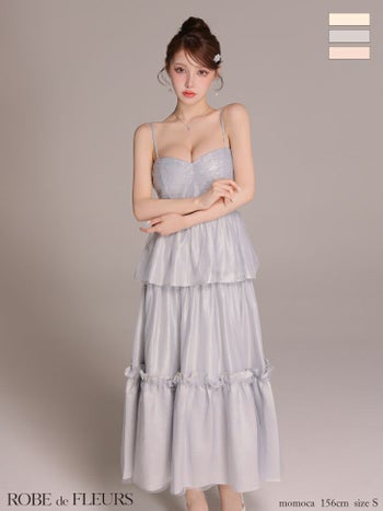 キャバドレス ROBEdeFLEURS ローブドフルール フェミニン キャミソール キーネックデザイン ペプラム サテン ビーズチュール Aラインロングドレス