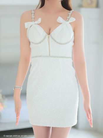 キャバドレス タイトミニドレス an アン キャミソール リボン ビジュー ジップデザイン ツイード