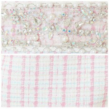 繊細かつ上品な煌めきを放つ☆ 【Angel R/エンジェルアール】キャミソール バストメッシュ ウエストビジュー ツイード チェック シースルー タイトミニドレス (AR23213)