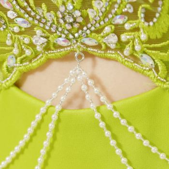 フロント パールチェーン アッパー フラワー パールビジュー タイトミニドレス