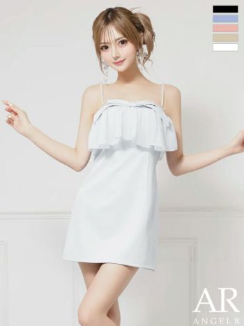 キャバドレス Angel R エンジェルアール キャミソール パールチェーン フリル リボン ビジュー フェミニン 2way ベアトップ フレアミニドレス