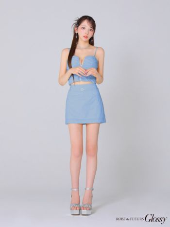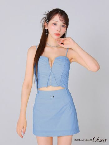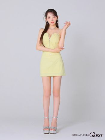 XSあり!人気のセットアップデザイン☆ 【Glossy by ROBE de FLEURS/グロッシー】セットアップ キャミソール シャーリング ナイロン ジップデザイン タイトミニドレス(GL3293)