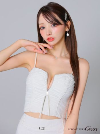 キャバドレス Glossy by ROBE de FLEURS セットアップ キャミソール シャーリング ナイロン ジップデザイン タイトミニドレス