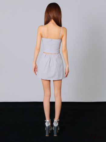 3. 【Glossy by ROBE de FLEURS/グロッシー】セットアップ キャミソール シャーリング ナイロン ジップデザイン タイトミニドレス(GL3293)
