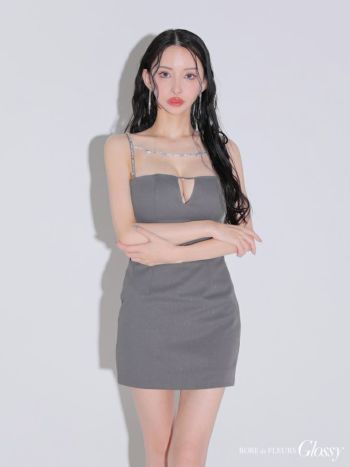 3. 【Glossy by ROBE de FLEURS/グロッシー】キャミソール シンプル バッククロス ラメ バストカット デコルテビジュー タイトミニドレス (GL3590)