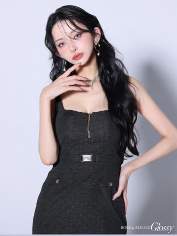 キャバドレス Glossy ROBE de FLEURS グロッシー ローブドフルール キャミソール vカット ワッフル ジップデザイン ウエストベルト タイトミニドレス