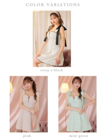 3. 【ROBEdeFLEURS/ローブドフルール】キャミソール ツイード 肩リボン パステル チェック フレアミニドレス(fm2991)