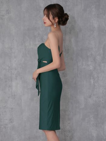 キャバドレス Veautt ヴュート タックデザイン ワンカラー キャミソール チェーン ウエストカット 膝丈ドレス