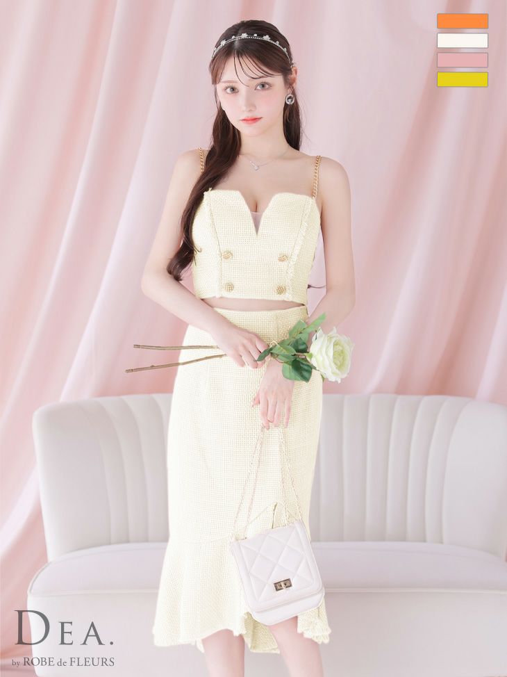 他の画像を見る XS~Lあり!色っぽいマーメイド♡ SALE【DEA.by ROBE de FLEURS/ディア】マーメイド サマーツイード ダブルボタン フリンジ チェーンキャミソール セットアップ タイトロングドレス(DE2784) SALE 定価 ¥ 31,680 → ¥ 25,344 税込 詳細を見る お気に入りに登録する