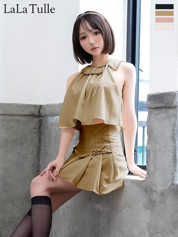 キャバドレス Angel R エンジェルアール ノースリーブ プリーツスカート リボン セットアップ 襟付き ポケット チェーン フレアミニドレス