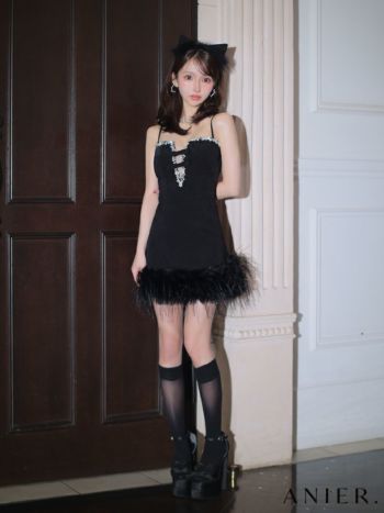 コスプレ anier.ROBE アニエルローブ 猫 アニマル リボン セクシー キャミソール ファー タイトミニドレス