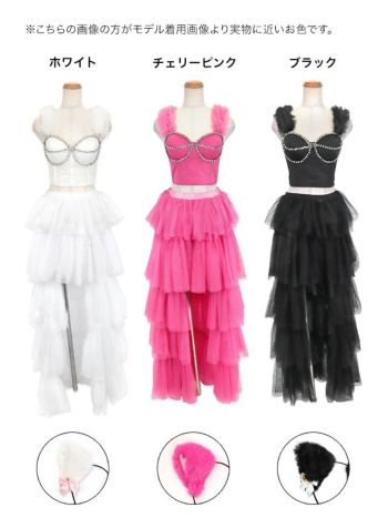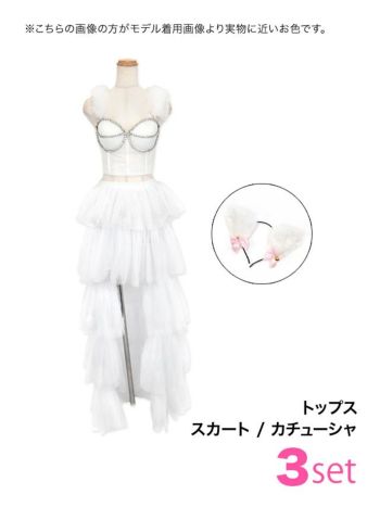 4. SALE【コスプレ】ビジュー ビスチェ へそ出し セットアップ ふわふわ フィッシュテール フレアスカート 猫 アニマル 衣装3点セット[トップス/スカート/カチューシャ]