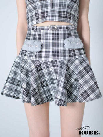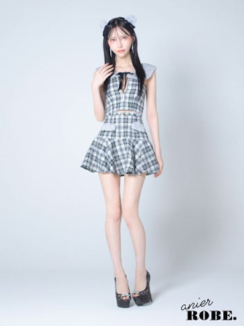 4. 【コスプレ】【ANIER./アニエル】襟付きデザイン チェック柄 ジップデザイン キャミソール オープンバスト ベア アニマル セットアップ フレアミニドレス [ドレス/カチューシャ](anier4044)