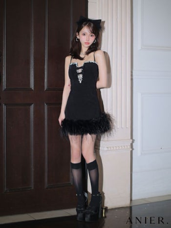 コスプレ anier.ROBE アニエルローブ 猫 アニマル ファー セクシー リボン キャミソール タイトミニドレス