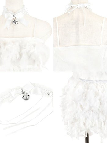4. 【コスプレ】ふわふわ 鈴リボン へそ出し ボリューム フェザー ガーリー セットアップ 猫 アニマル 衣装4点セット[トップス/スカート/チョーカー/カチューシャ]