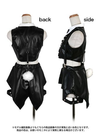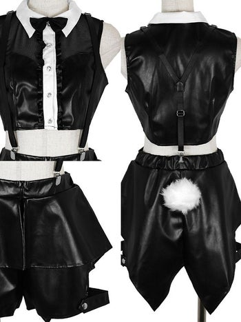 4. 【コスプレ】レザー セットアップ へそ出し セクシー ブラック バニー 衣装6点セット [トップス/ショートパンツ/サスペンダー/カチューシャ/カフス/しっぽ]