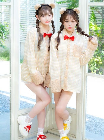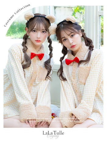 4. 【コスプレ】テディベア チェック柄 ボア シャツ ガーリー アニマル 衣装3点セット [カチューシャ/シャツ/リボンブローチ]