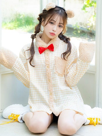 コスプレ テディベア チェック柄 ボア シャツ ガーリー アニマル 衣装3点セット