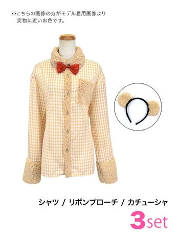 あざとシャツワンピデザイン♡ 【コスプレ】テディベア チェック柄 ボア シャツ ガーリー アニマル 衣装3点セット [カチューシャ/シャツ/リボンブローチ]