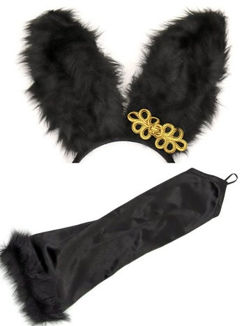 5. 【コスプレ】レトロ ブラックフェザー 肩出し ガーリー チャイナ バニー アニマル 衣装3点セット [ワンピース/カチューシャ/グローブ]