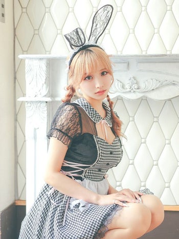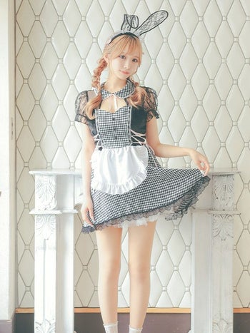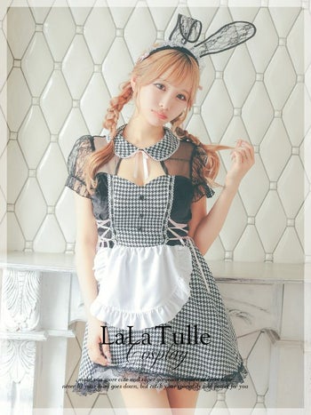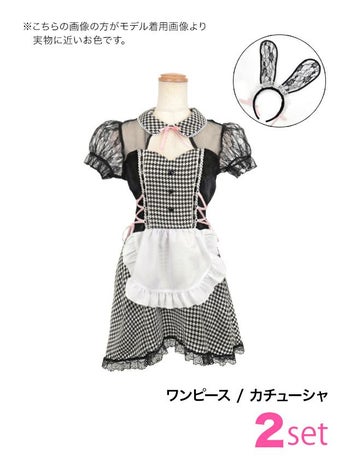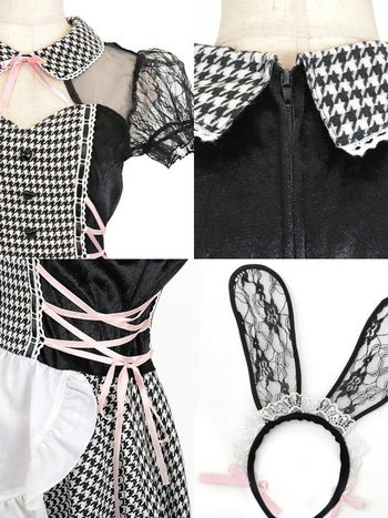 5. 【コスプレ】千鳥格子柄 ガーリー レースアップ フレアスカート メイド バニー アニマル 衣装2点セット [ワンピース/カチューシャ]
