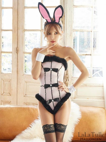 コスプレ通販 LaLaTulle♪ SALE【コスプレ】パールリボンファー付きハイレグセクシーバニー4点set[オールインワン+カチューシャ+リストバンド+ニーハイソックス]