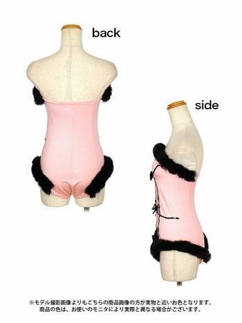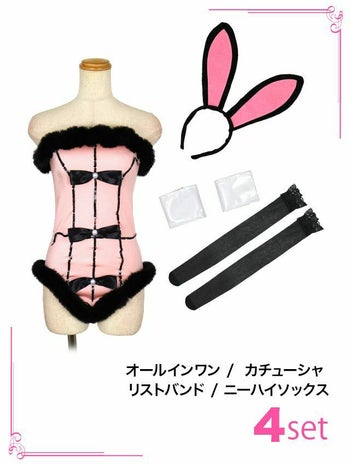 4. SALE【コスプレ】パールリボンファー付きハイレグセクシーバニー4点set[オールインワン+カチューシャ+リストバンド+ニーハイソックス]