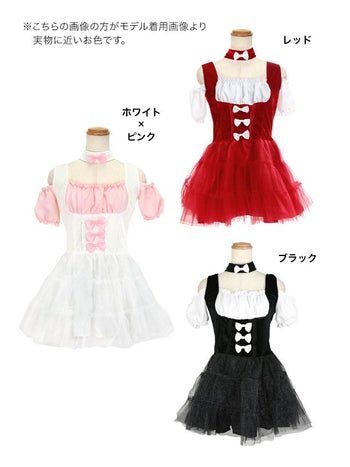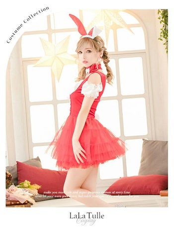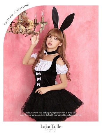 可愛さ溢れる王道バニー♡ 【コスプレ】オフショルダー バニーガール フレアスカート メイド ハロウィン衣装3点セット [ワンピース+カチューシャ+チョーカー]