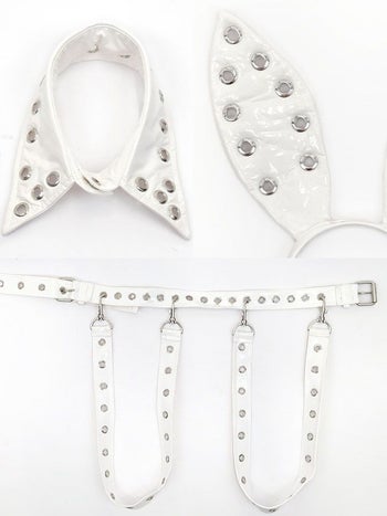 ハードに魅せるsexyコスプレ♡ SALE【コスプレ】レザー ハード セクシー アイレット インポート バニー 衣装5点セット [ワンピース/カチューシャ/付け襟/カフス/ベルト]
