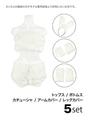 5. SALE【コスプレ】ふわふわ ファー セットアップ セクシー ラブリー バニーガール 衣装5点セット[トップス/ボトムス/カチューシャ/アームカバー/レッグカバー]