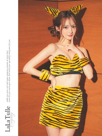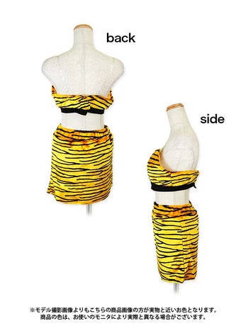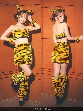3. SALE【コスプレ】鬼 トラ柄 セクシー タイトスカート セットアップ ベアトップ アニマル 衣装5点セット [トップス/スカート/ヘアアクセサリー/カフス/レッグカバー]