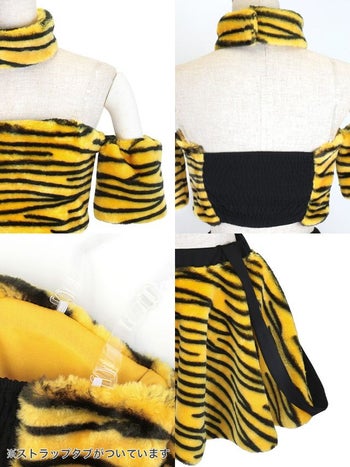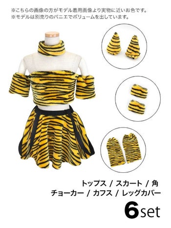 鬼 トラ柄 サスペンダー へそ出し ベアトップ フレアスカート アニマル 衣装6点セットのスペック表
