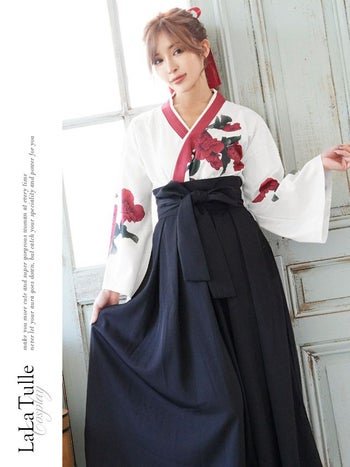 4. SALE【コスプレ】袴 レトロ 大正ロマン 和装 個性的 ロング丈 衣装3点セット [トップス/袴/リボン2本]