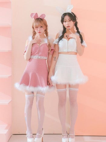 ふわふわフェザーファーが可愛すぎるバニーコスプレ♡