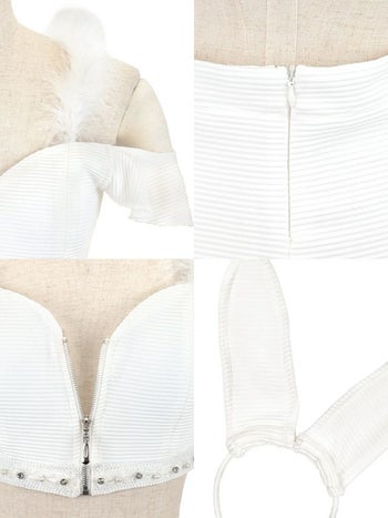 4. SALE【コスプレ】フェザーファー 肩あき フロントジップ セットアップ フレアスカート バニー 衣装3点セット [トップス/スカート/カチューシャ]