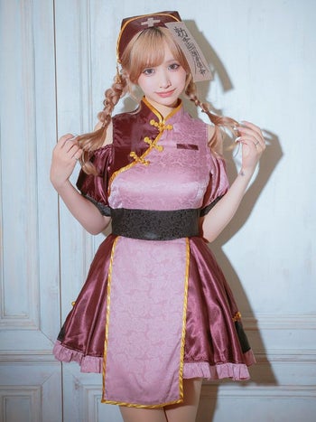 コスプレ キョンシー キャラクター 肩出し フレアスカート 体型カバー レトロ ナース 衣装3点セット