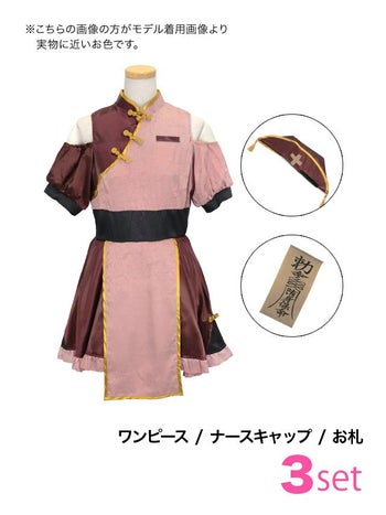 5. SALE【コスプレ】キョンシー キャラクター 肩出し フレアスカート 体型カバー レトロ ナース 衣装3点セット[ワンピース/ナースキャップ/お札]