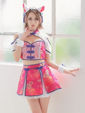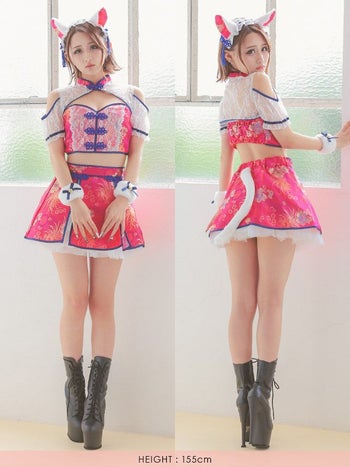 コスプレ チャイナ セットアップ ガーリー フレアスカート へそ出し 猫 アニマル 衣装7点セットのスペック表