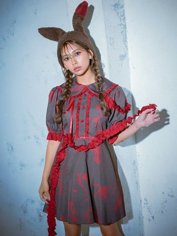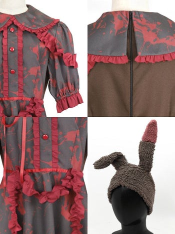 5. SALE【コスプレ】ホラー 血糊プリント バニー もこもこ アニマル 衣装2点セット [ワンピース/帽子]