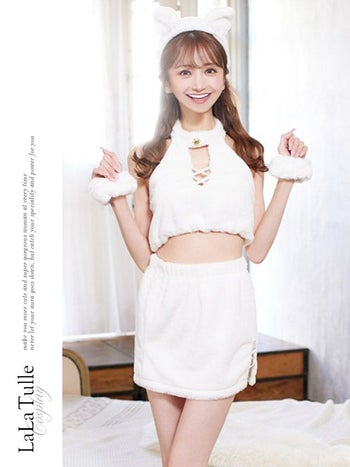 ペアコスプレとしてもおすすめ♪ SALE【コスプレ】ファー もこもこ ガーリー 猫 セクシー アニマル 衣装5点セット [トップス/スカート/カチューシャ/リストバンド/レッグウォーマー]