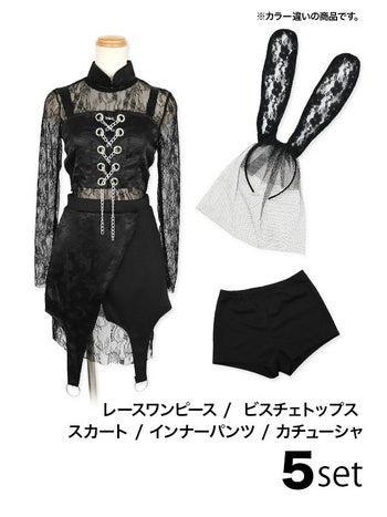 5. SALE【コスプレ】セットアップ セクシー 長袖 レース バニー 衣装5点セット[レースワンピース+ビスチェ+トップス+スカート+インナーパンツ+カチューシャ]