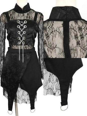 ブラックレースが色っぽさを高める♡ SALE【コスプレ】セットアップ セクシー 長袖 レース バニー 衣装5点セット[レースワンピース+ビスチェ+トップス+スカート+インナーパンツ+カチューシャ]